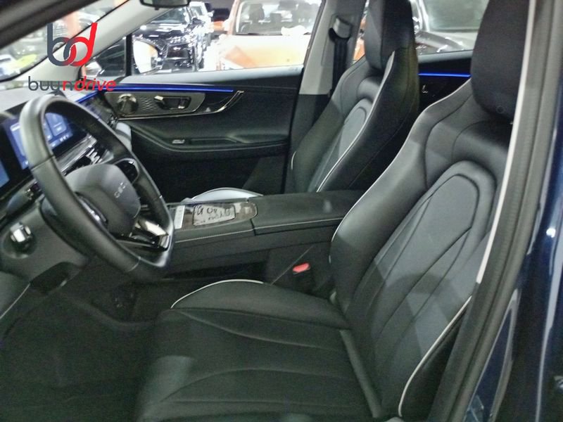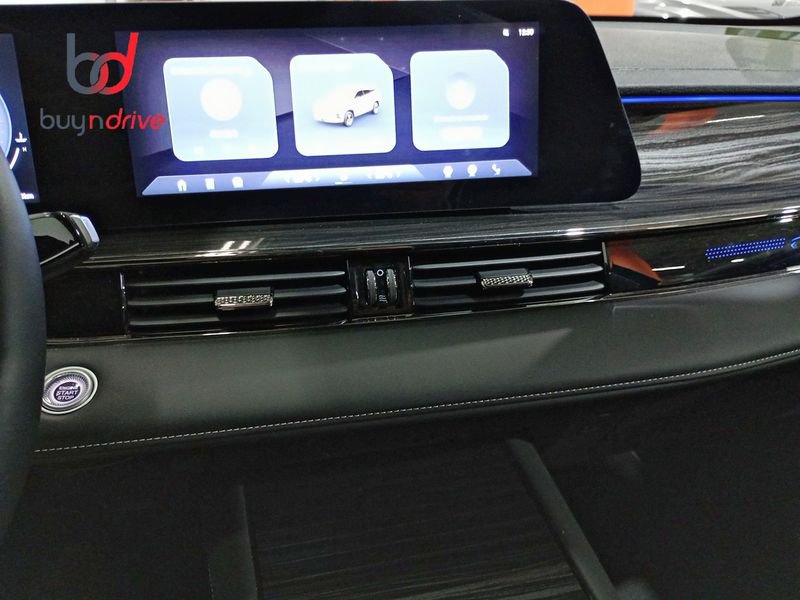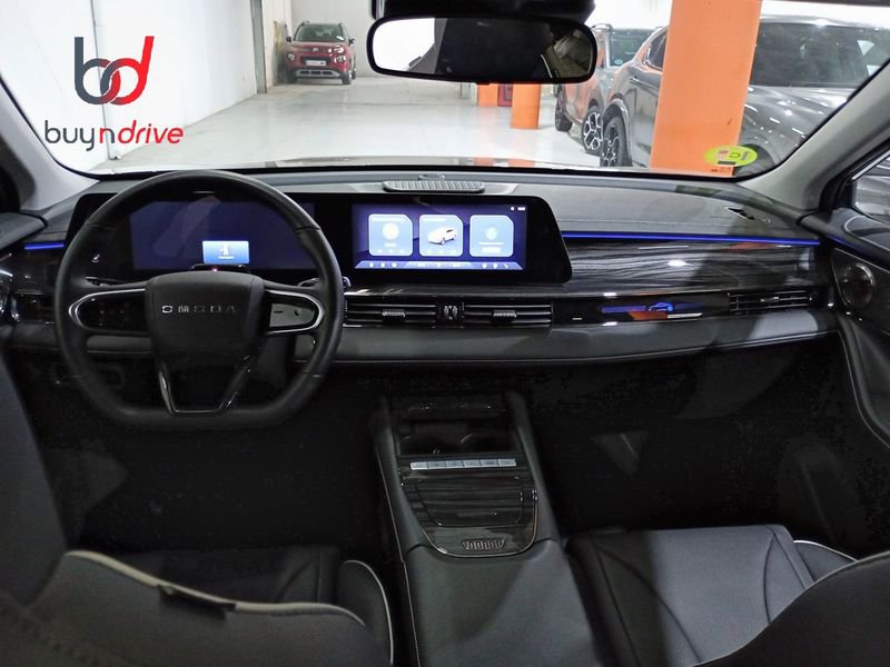 - Acabados de lujo: consola central en negro piano, puertas en cuero sintético y tablero en aluminio y cuero sintético